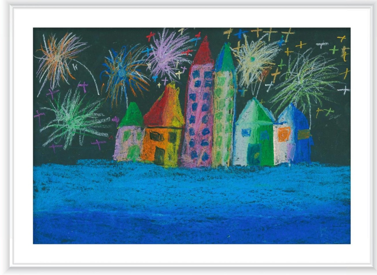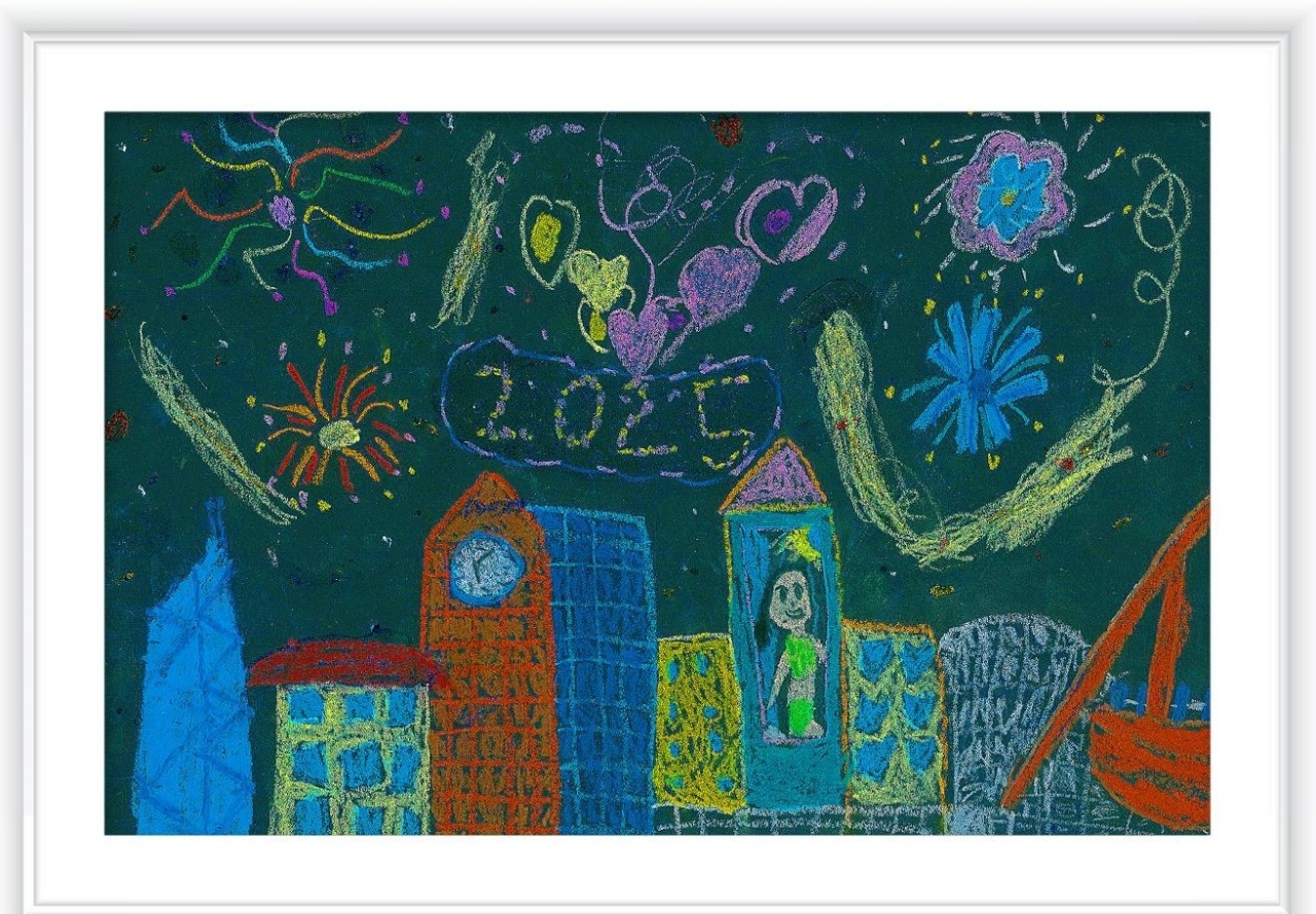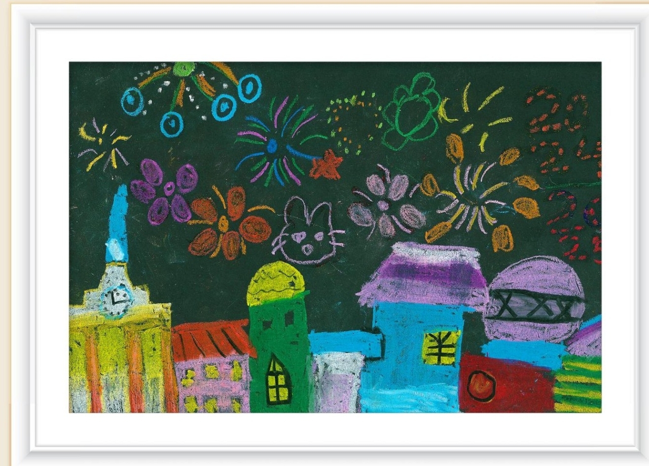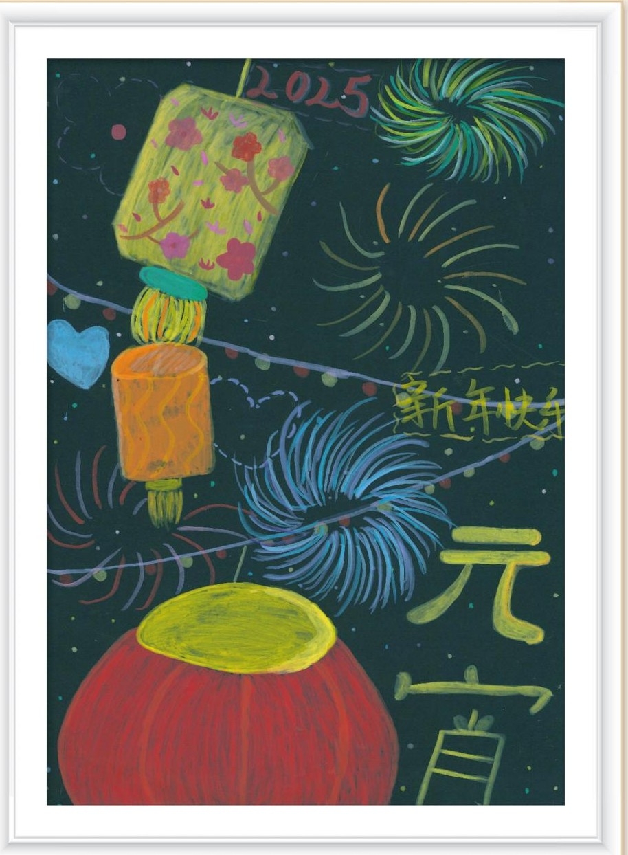 作品充滿節奏感與動勢,展現孩子對節日氣氛的想像與表達能力。