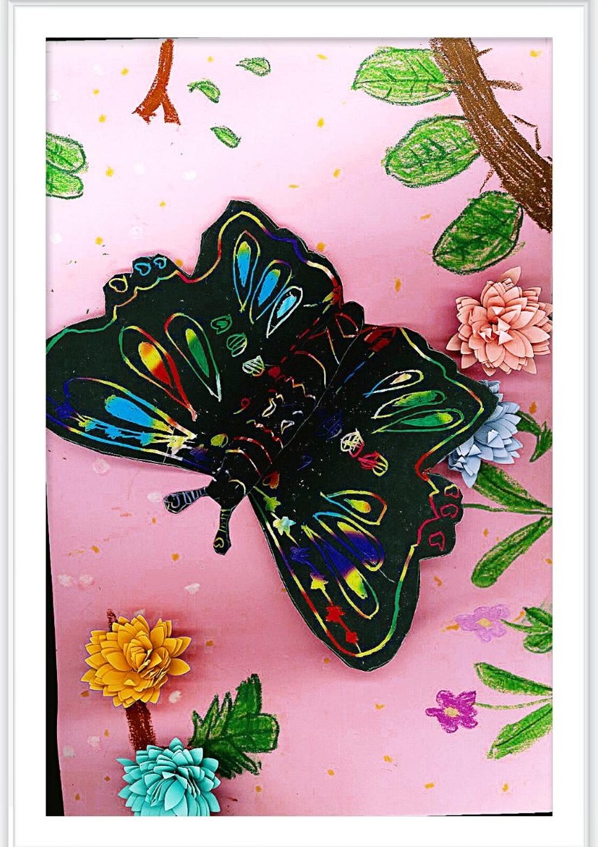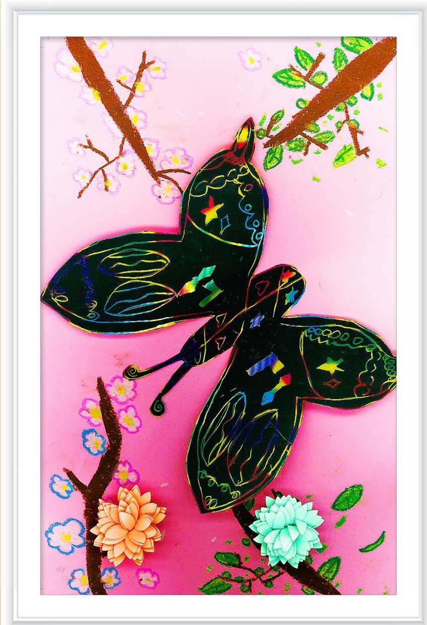 作品構圖豐富、色彩繽紛,展現孩子對自然的觀察與對生命的細膩感受,讓畫紙上每一隻蝴蝶都散發着靈動的氣息。