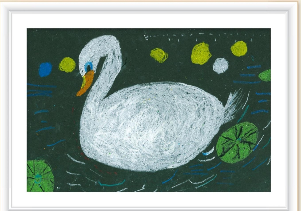 一年級的學生把中文課堂所學的古詩〈詠鵝〉與藝術創作結合,運用色彩與想像,描繪心中的鵝兒姿態。