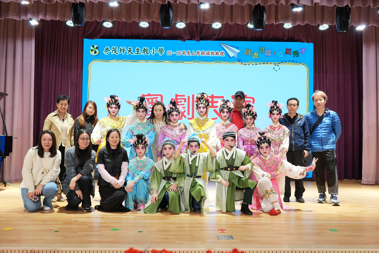 - 本校參與粵劇學者協會推展的「粵劇教學先導計劃」,於一至六年級推行粵劇教學單元,讓學生透過學習粵劇做手、工尺譜、行當等內容,加深對粵劇音樂及中國文化的認識,並培養核心價值。