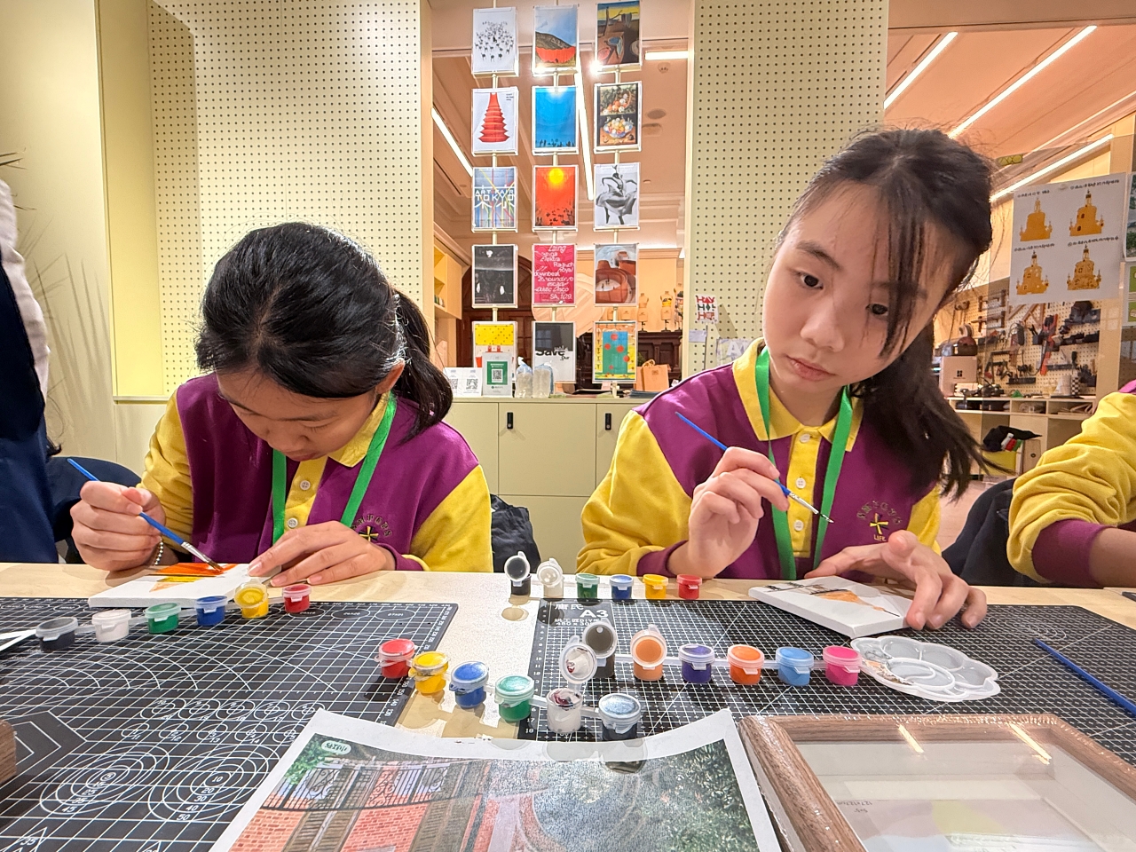 抵達後,同學到訪 AIO 參與藝術課堂。同學在專業藝術導師的悉心指導下,先以廣州沙面古建築群為創作主題,學生細心觀察建築特色,並透過畫筆將所見所感轉化為具個人風格的藝術作品,展現對歷史建築美學的理解。第二部分則配合農曆馬年,以「馬」為主題進行毛筆揮春創作,學生嘗試運用書法技巧表達祝賀之意,從中體會中國傳統藝術與節慶文化的結合。