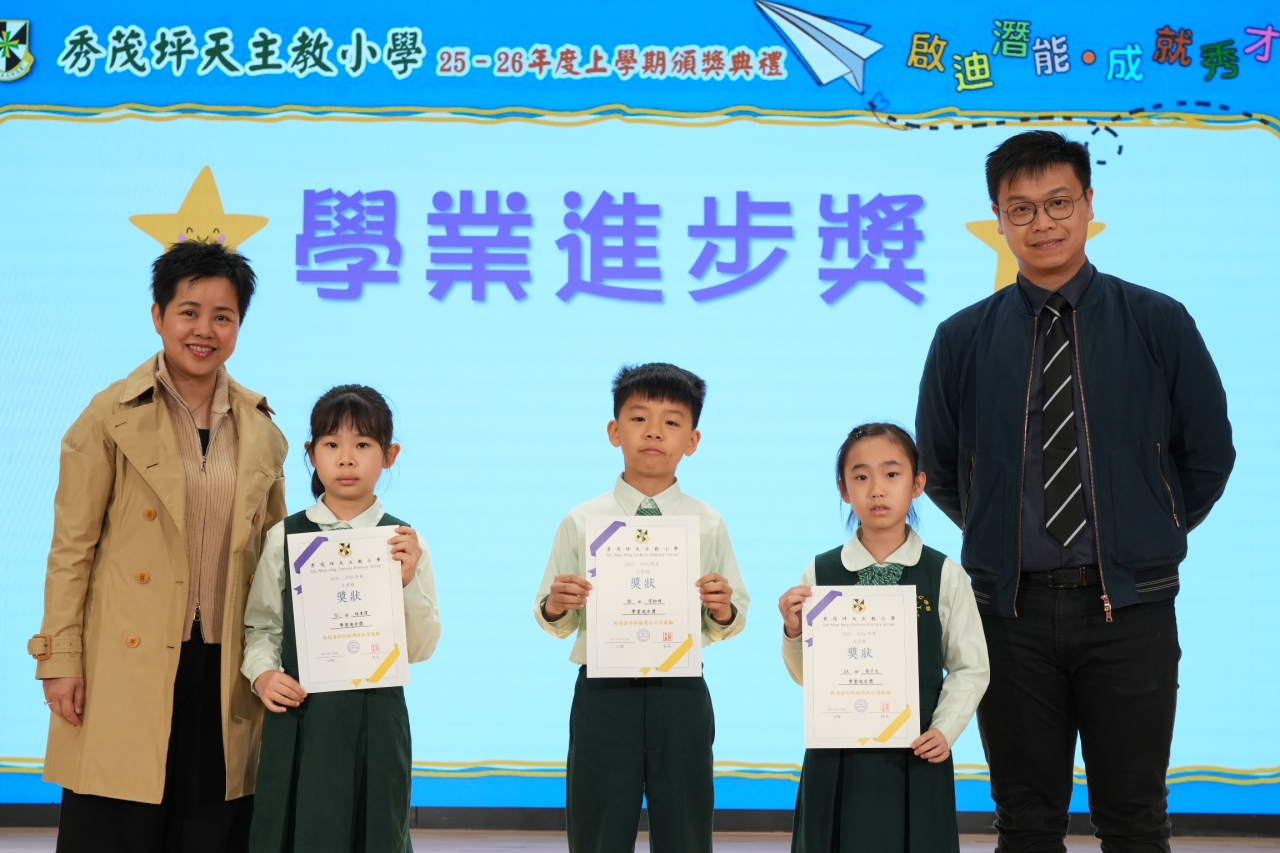 本校早前隆重舉行上學期頒獎典禮暨家長日,以「Smile • Motivate • Progress — 啟迪潛能.成就秀才」為主題,表揚學生在不同範疇的努力與成就,並在家長的見證下,共同慶賀學生成長的重要時刻。