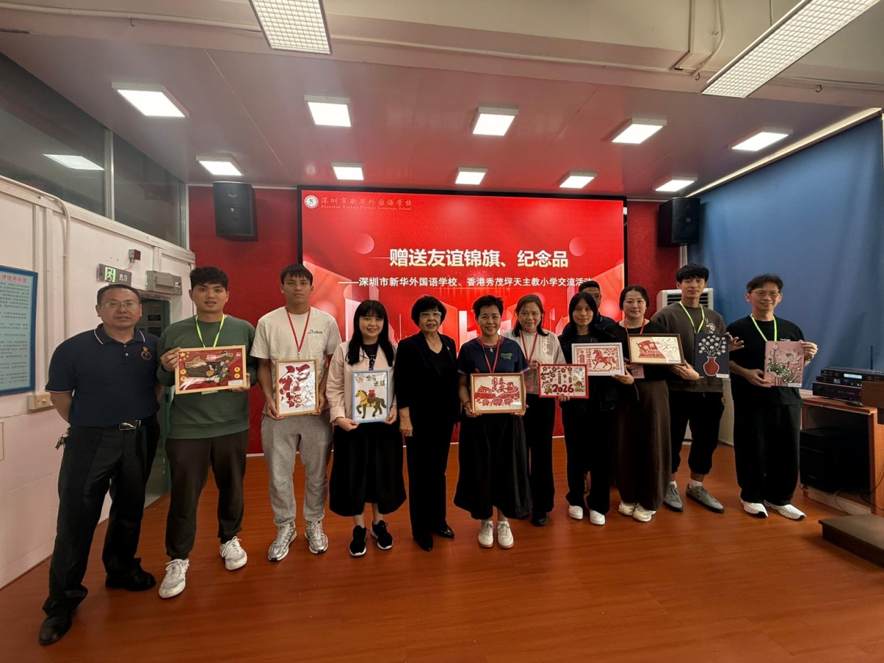 姊妹情深:深港文化交流 中午,我們抵達姊妹學校——深圳市羅湖區新華外國語學校!楊美嘉校長與新華外國語學校校長共同勉勵兩地學子互相啟發。當地同學展現了精彩絕倫的才藝表演 🎭,秀天學生亦積極參與互動,在歡笑聲中建立了珍貴的同胞情誼。❤️