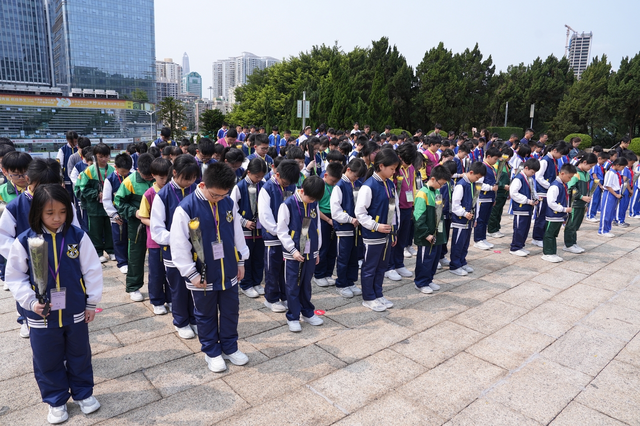 緬懷歷史:學習堅毅精神 第一站來到「深圳革命烈士陵園」。在莊嚴的氛圍下,同學們參與獻花儀式並參觀紀念館,向保家衛國的先烈致敬。這堂寶貴的歷史課,讓孩子們深刻體會到「堅毅」與「承擔」的價值,學會感恩當下的和平與進步。🙏