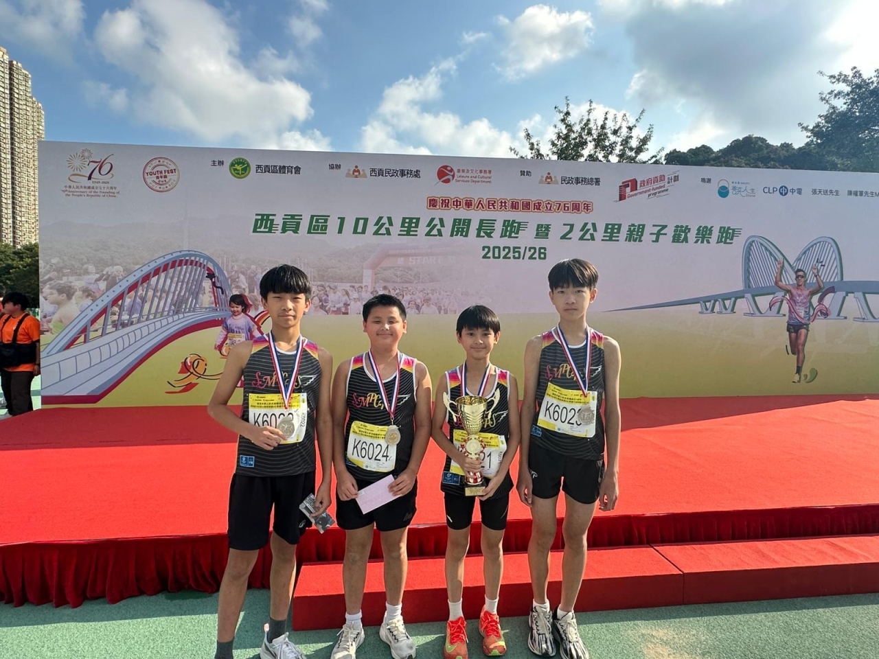 本校田徑隊早前參加「慶祝中華人民共和國成立 76 週年 西貢區 10 公里公開長跑暨兩公里親子長跑 2025/26」。在兩公里隊制賽男子小學組賽事中,本校隊員憑堅毅意志與團隊默契,在多所參賽學校中脫穎而出,勇奪亞軍佳績,為校爭光。