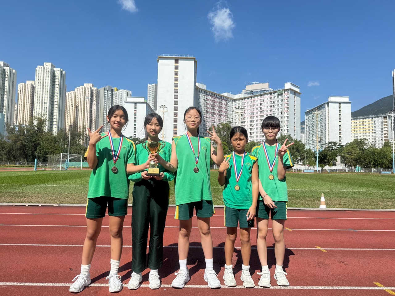 女子隊成員6A陳憓喬、6C李凱琳、 6D吳熙琳、6D余茗雅及 6D施珊妮在賽事中毫不鬆懈,奮力奔跑。她們面對競爭者,展現出堅毅的鬥志,最終成功獲得女子組季軍!