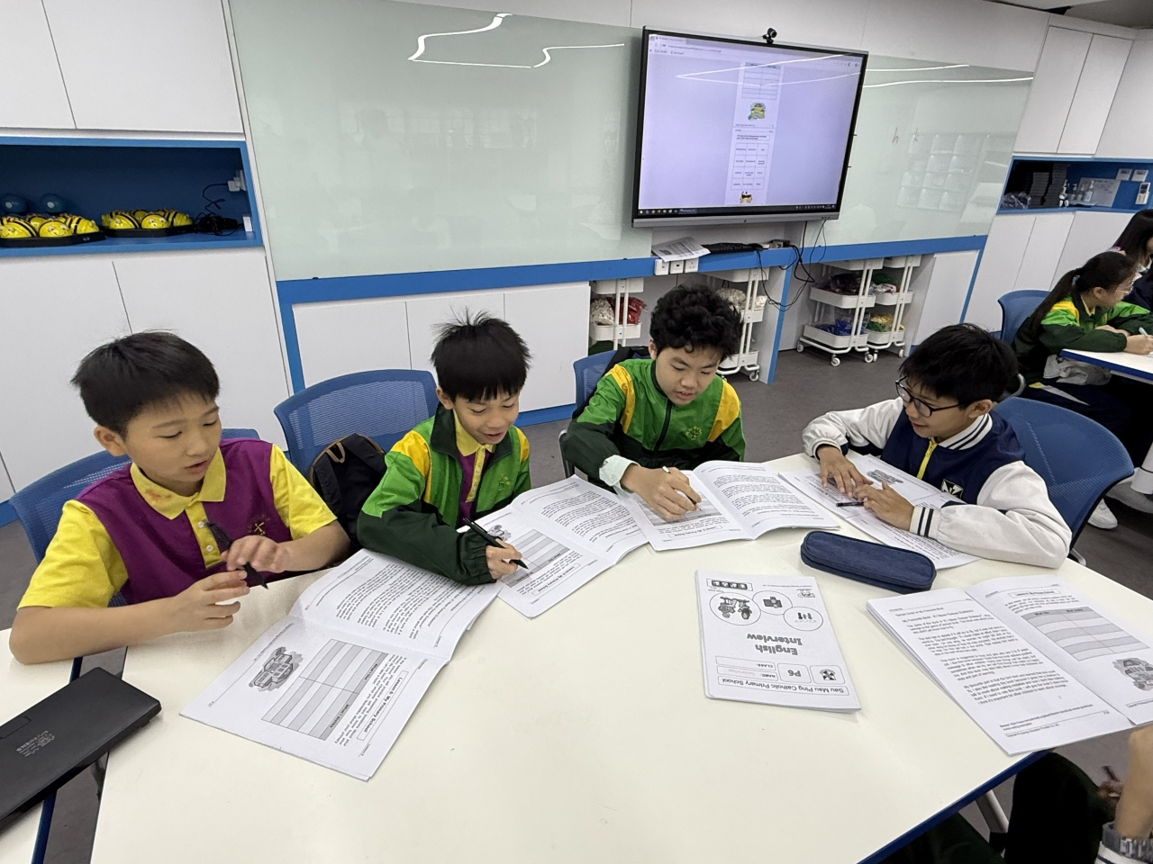 | Interview Class Some P6 students in the first term and P5 students in the second term are participating in the Interview Class, which helps them to prepare their interview skills and enhance their spoken abilities for the coming secondary school challenges. Teachers provide rich resources and diversified learning activities such as group work, debate, presentation and sharing to arouse students’ interest and strengthen their confidence in speaking English. |
