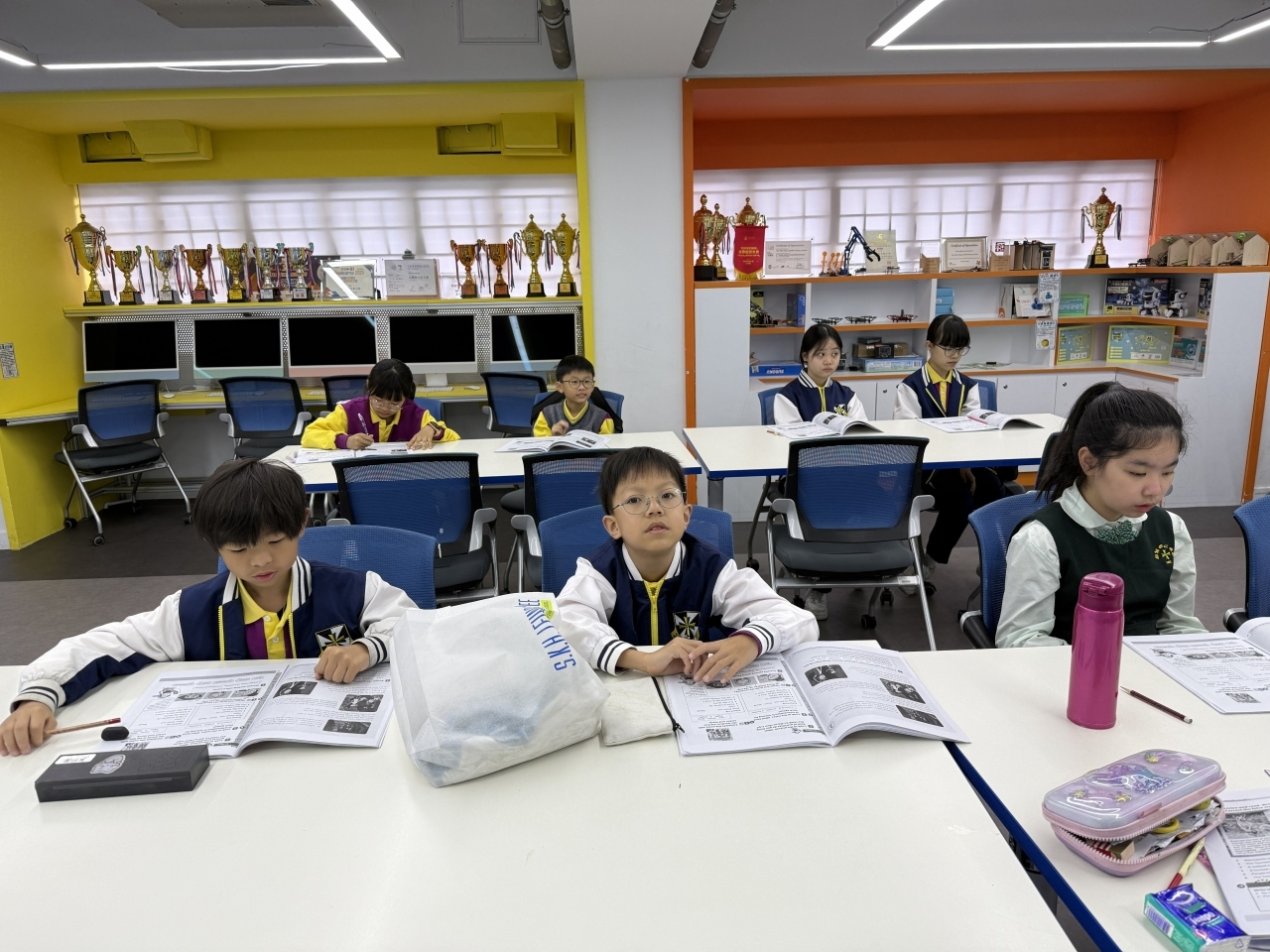 | P1 to P6 Enrichment Courses All students will be grouped to attend differentiated and suitable courses, which will be arranged once a week in the afternoon. Teachers in charge will mainly focus on the facilitation of reading, listening, writing and speaking skills through the design of activities. For P5 to P6 students, teachers will also incorporate Pre-S1 content and interview skills to help them prepare better for the near future. |