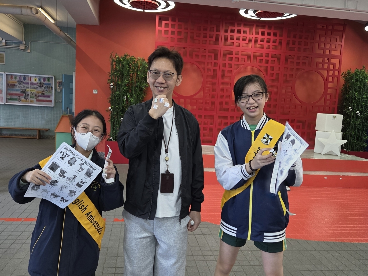 | English Ambassadors Scheme Some students who have English spoken talents and are willing to help at recess will be selected by teachers. They help NET and LETs to assist English activities at recess. What’s more, NET talks with students in English at the tuck shop at lunch recess every Tuesday. |