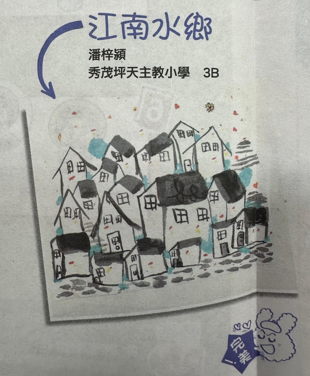 3年級 潘梓穎 作品獲《公教報》刊登。作品受吳冠中名作《The Zhou Village, a Water World》(1986)啟發,展現對中國水鄉之美的讚嘆與對古宅風貌的細膩描繪。