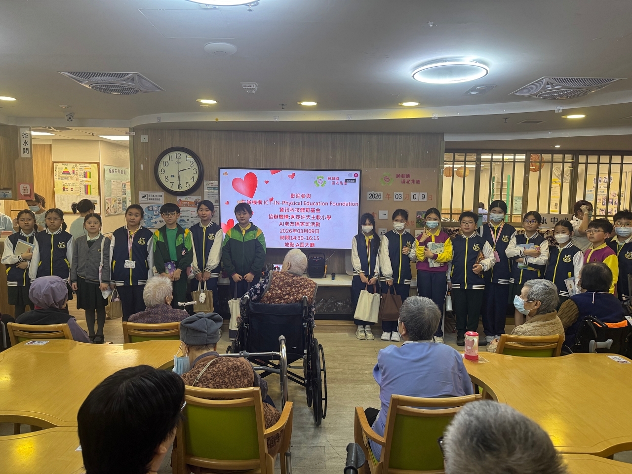活動當日,學生除了演唱作品外,更主動與長者傾談交流,細心聆聽他們的生活分享,從中建立跨代溝通與情感連結。有長者分享昔日經歷,學生則以真誠的態度回應與關懷,現場氣氛溫馨融洽,充分展現關愛與尊重。