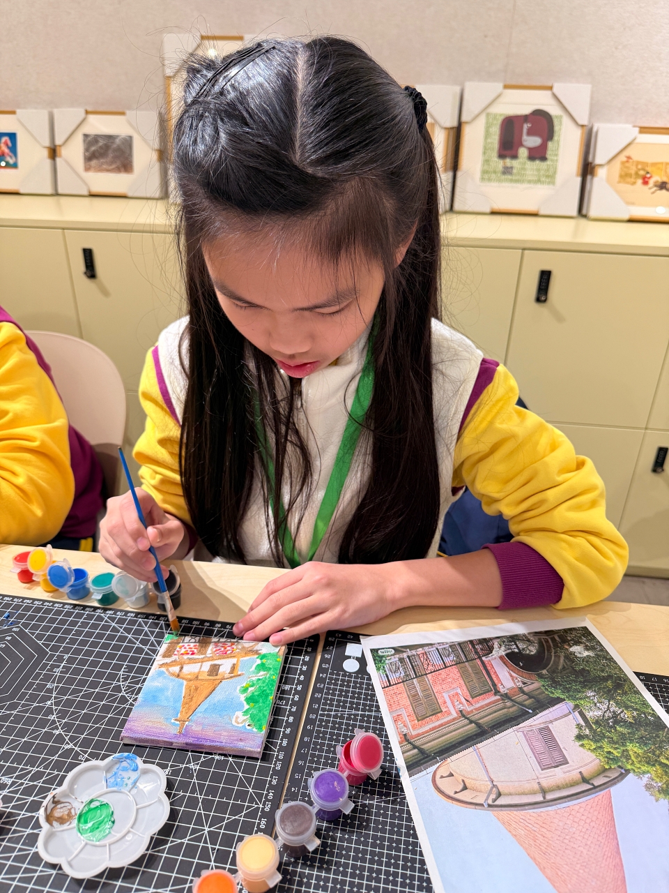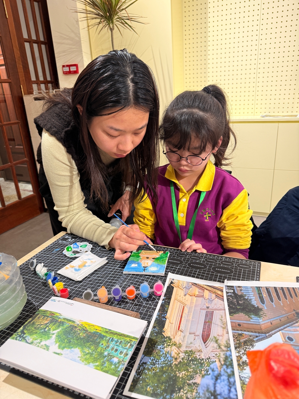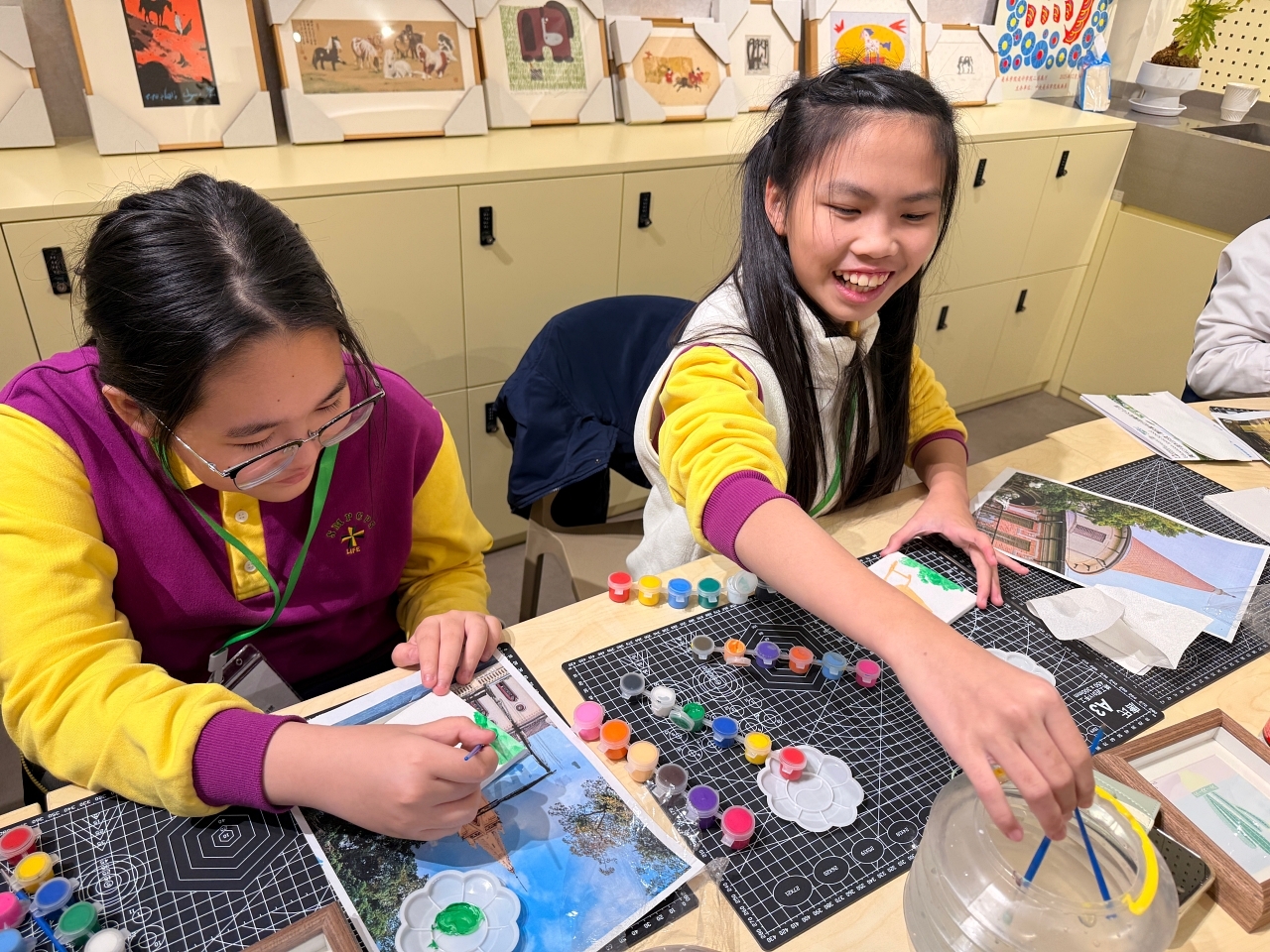 抵達後,同學到訪 AIO 參與藝術課堂。同學在專業藝術導師的悉心指導下,先以廣州沙面古建築群為創作主題,學生細心觀察建築特色,並透過畫筆將所見所感轉化為具個人風格的藝術作品,展現對歷史建築美學的理解。第二部分則配合農曆馬年,以「馬」為主題進行毛筆揮春創作,學生嘗試運用書法技巧表達祝賀之意,從中體會中國傳統藝術與節慶文化的結合。