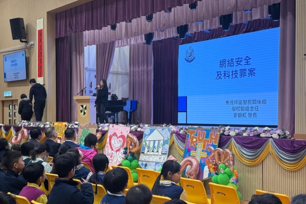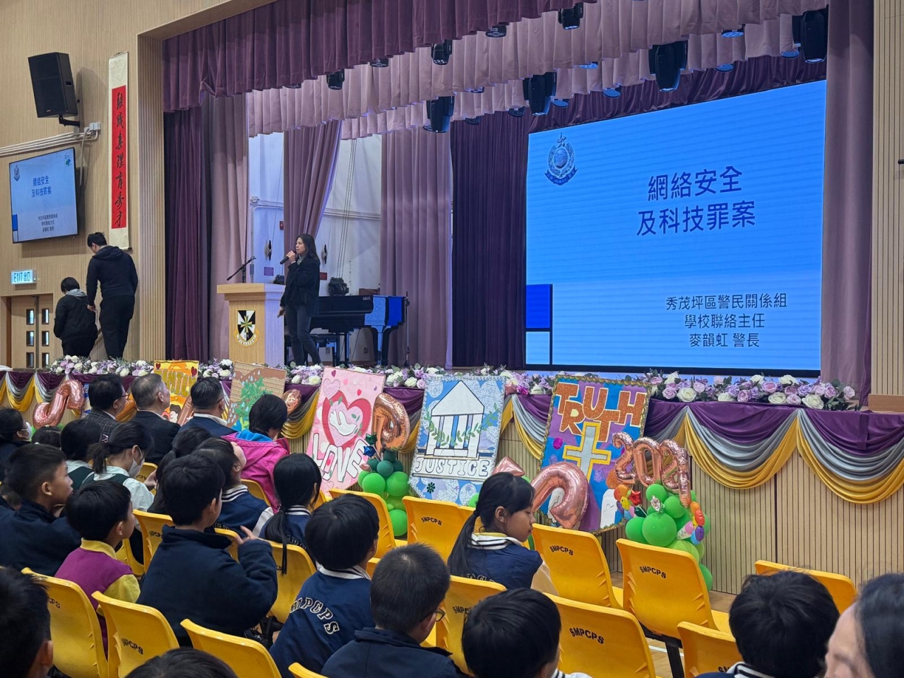 本校早前舉行由 觀塘區撲滅罪行委員會、秀茂坪警區及觀塘警區 合辦的「守護觀塘滅罪宣傳講座」,加強學生對科技罪行及防騙議題的認識,提升守法及自我保護意識。