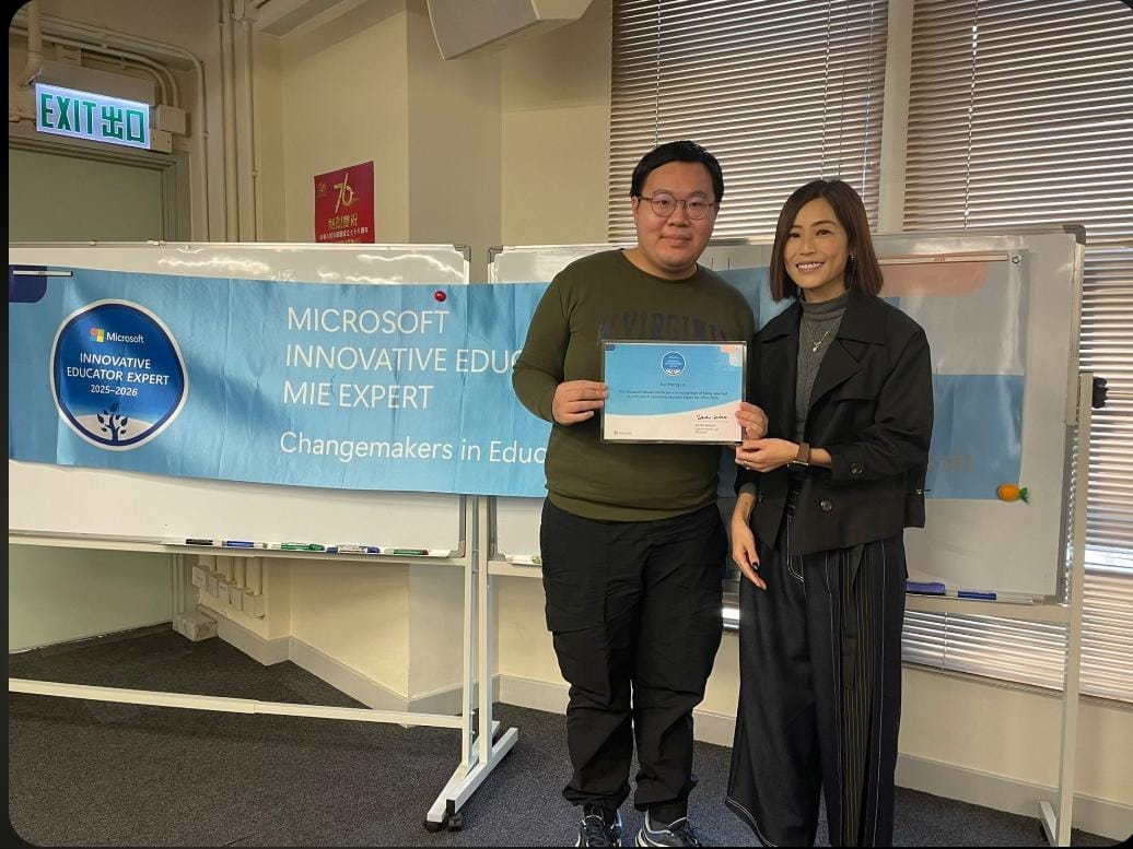 此外,本校 羅啟康老師 更成功入選 Microsoft Innovative Educator Expert (MIEE),成為全港僅 61 位 獲此殊榮的教育工作者之一,成績實屬難能可貴,亦充分展現本校教師團隊在資訊科技教學方面的專業實力與創新精神。